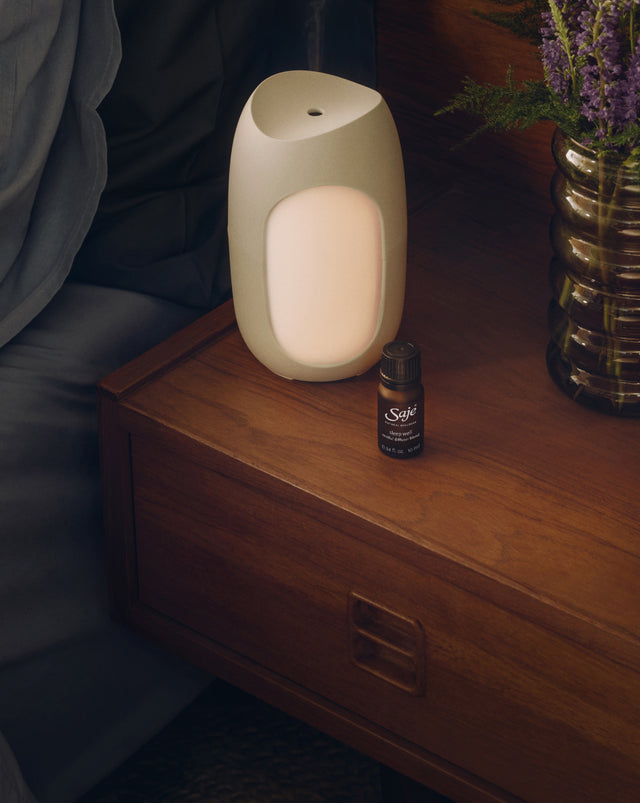 Every Saje diffuser breaks down water molecules into a fine, cool mist that’s packed with negative ions, neutralizing pollutant aggressors and enhancing well-being. Adding 100% natural essential oil blends allows the power of aromatherapy to target your wellness needs and create a pleasant aroma in the air.