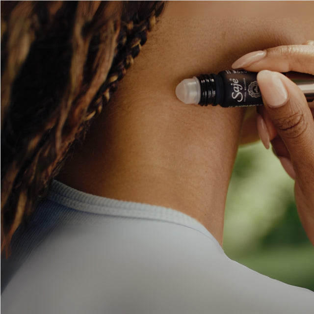 Roll onto temples, neck, or shoulders for cooling tension relief.