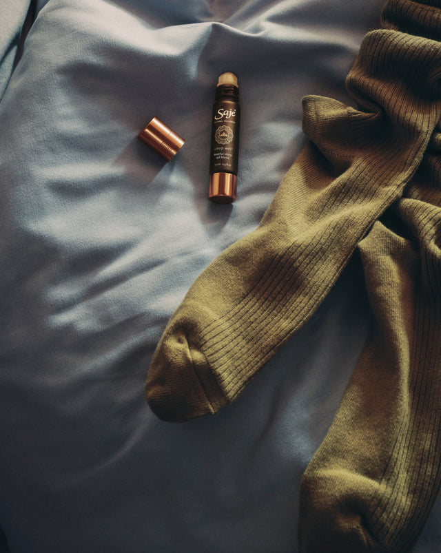 Apply to wrists, throat, temples, soles of feet or pulse points 30-60 minutes before bed. You can also it in the bath. Just add 3–5 drops to a full bath and swish gently to form a film on top of the water. And don’t forget about a Saje breath. Apply Sleep Well to palms, cup over your nose and mouth, and inhale deeply.