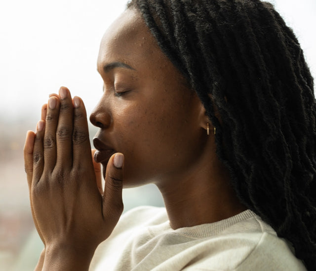 A man cupping his hands to his nose - in what is called a Saje breath