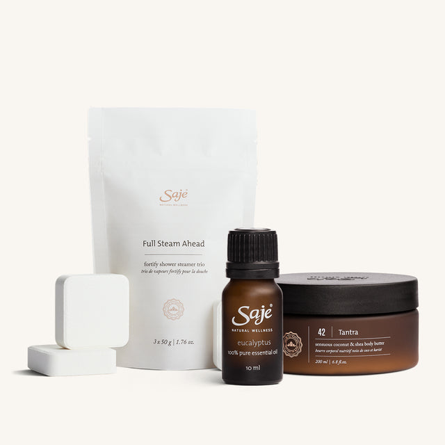 We created this spa-inspired self-care bundle to help you feel relaxed and refreshed the all-natural way. Featuring the Full Steam Ahead Shower Steamer Trio, 100% pure Eucalyptus Essential Oil and Tantra Body Butter, it’s a three-step plant-powered routine that’s free of synthetics, irritants and artificial fragrances.